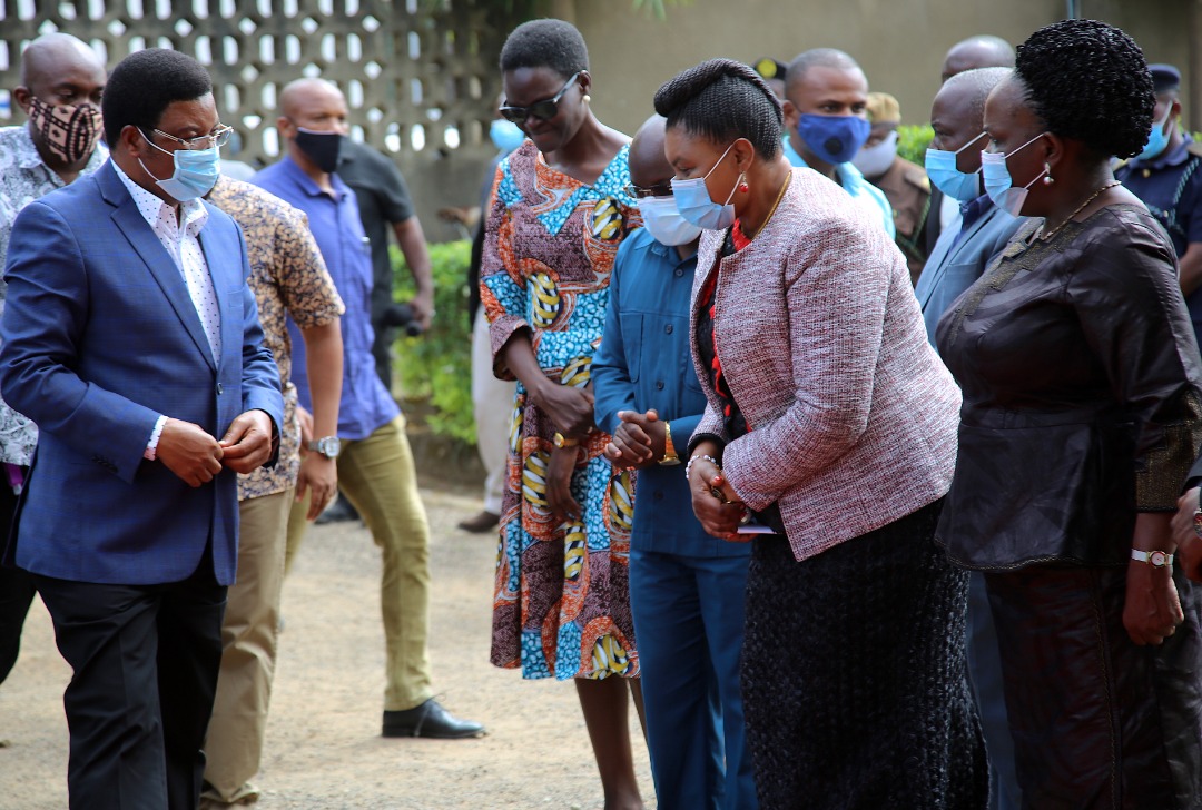 Waziri Mkuu, Kassim Majaliwa akisalimiana na viongozi wakati alipowasili kwenye viwanja vya Chuo cha Kyela Polytechnic College kutembelea Chuo hicho, Agosti 2, 2021. Kutoka kulia ni Waziri wa Elimu, Sayansi na Tekinolojia, Profesa Joyce Ndalichako, Waziri wa Nchi, Ofisi ya Waziri Mkuu, Sera, Bunge, Kazi, Vijana, Ajira na Wenye Ulemavu, Jenista Mhagama, Mkuu wa Mkoa wa Mbeya Juma Homera na Naibu Spika wa Bunge Dkt. Tulia Ackson. (Picha na Ofisi ya Waziri Mkuu)