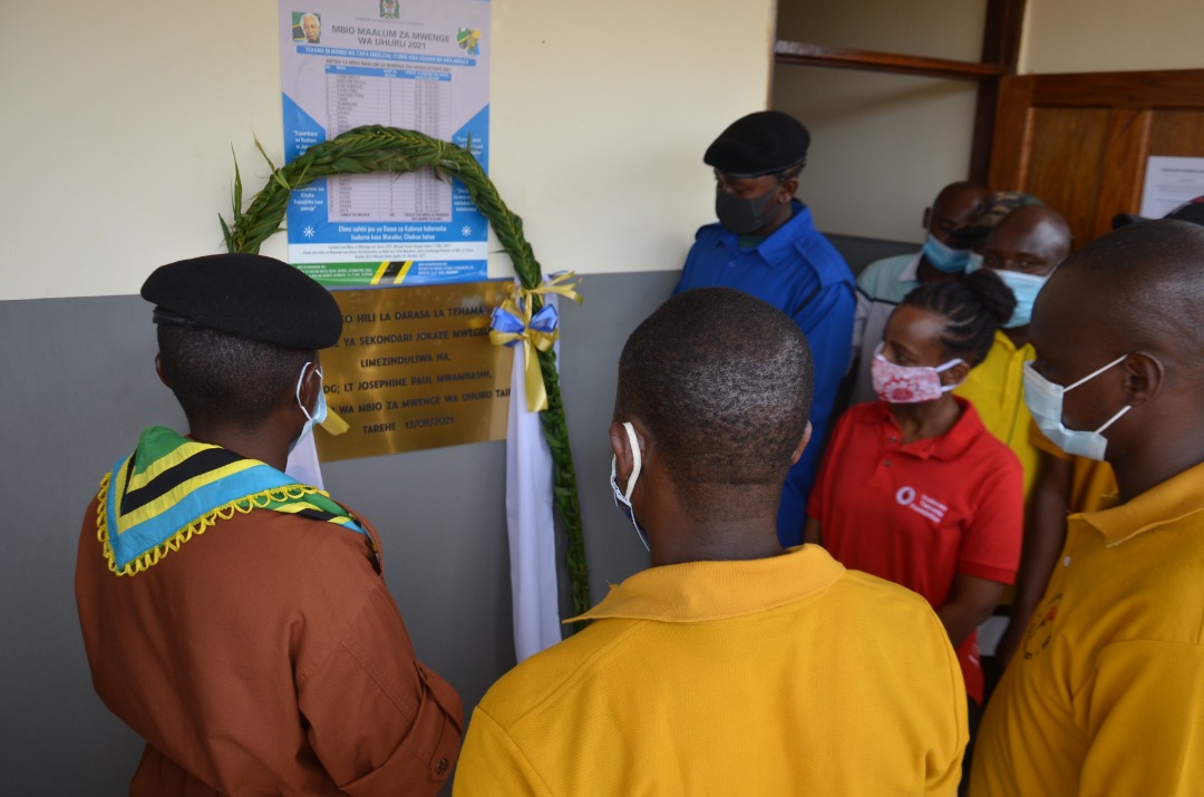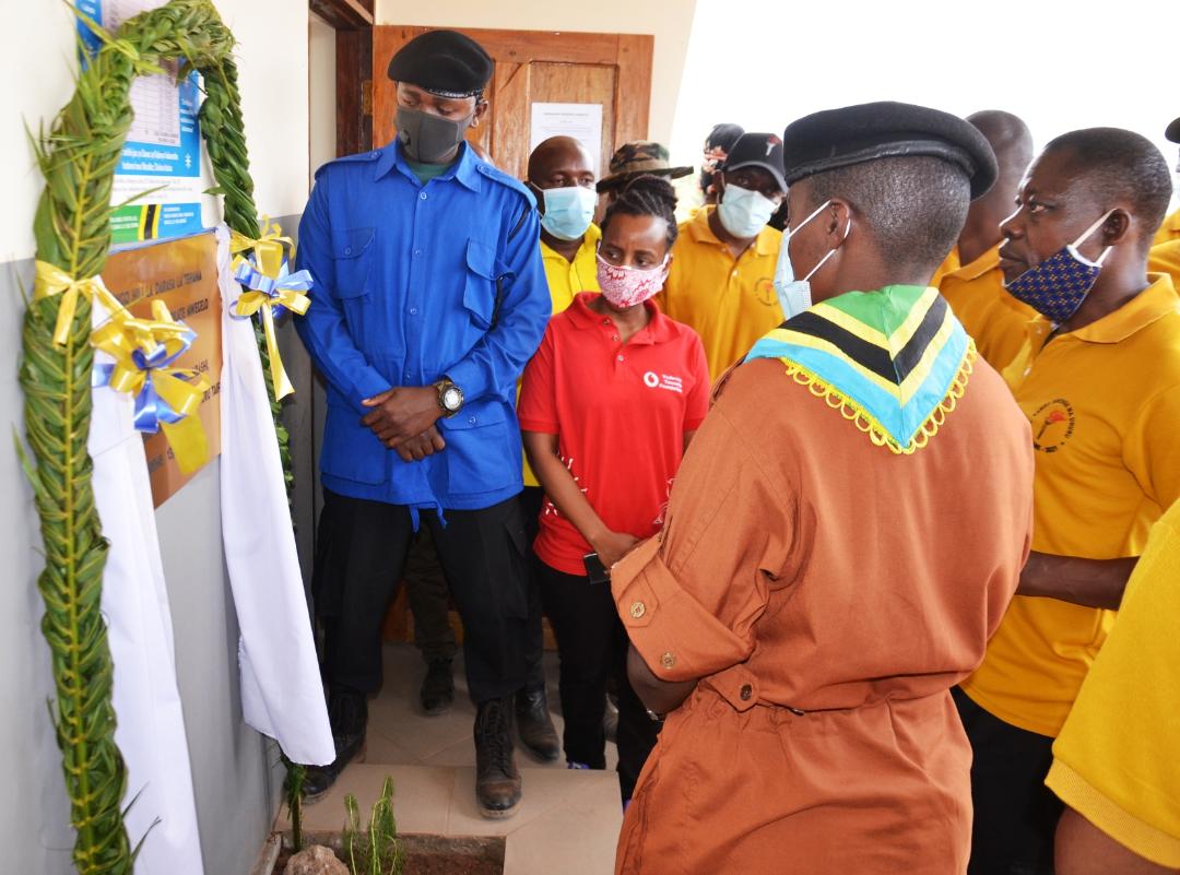 Kiongozi wa Mbio za Mwenge wa Uhuru Luteni Josephine Mwambashi (katikati) akimueleza jambo Meneja wa Vodacom Tanzania Foundation Sandra Oswald (kulia) mara baada ya kuzindua darasa la Tehama kwenye shule ya wasichana ya Jokate Mwegelo iliyopo wilaya ya Kisarawe mkoani Pwani mwishoni mwa wiki. Vodacom Tanzania kupitia taasisi ya Vodacom Tanzania Foundation imetoa kompyuta 15 kwa shule hiyo ikiwa na lengo la kuhakikisha wanafunzi wanapata maudhui ya elimu bure kupitia tovuti ya e-fahamu.