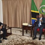 Rais wa Zanzibar na Mwenyekiti wa Baraza la Mapinduzi Dk.Hussein Ali Mwinyi (kulia) alipokuwa katika mazungumzo na Mwakilishi wa Heshima Tanzania katika Jamhuri ya Slovakia Bw.Mustafa Khataw (katikati) wakati alipofika Ikulu jijini Zanzibar kujitambilisha leo akiwepo na Mratibu wake hapa Zanzibar Mhe.Ibrahim Rara.[Picha na Ikulu] 25/08/2021.