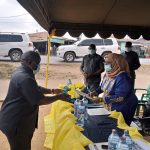Waziri Mkuu, Kassim Majaliwa akizungumza wakati alipokagua ujenzi wa Kituo cha Afya Usinge wilayani Kaliua, Agosti 28, 2021. Katikati ni Mkuu wa Mkoa wa Tabora, Balozi Dkt. Batilda Burian na kushoto ni Mkuu wa wilaya ya Kaliua, Paul Matiku.