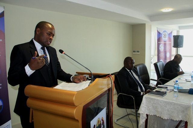Meneja Uhusiano wa Mfuko wa Taifa wa Bima ya Afya (NHIF) Angella Mziray akiwasilisha ratiba ya kikao kazi hicho kinachofanyika kwenye ukumbi wa PSSSF jijini Dododma leo.