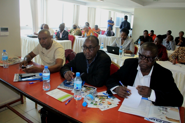 Baadhi ya wakuuu wa Vitengo wa Mfuko wa Taifa wa Bima ya Afya NHIF wakisikiliza Mkurugenzi wa Idara ya Habari Maelezo na Msemaji Mkuu wa Serikali Bw. Gerson Msigwa hayupo pichani wakati akifungua kikao kazi hicho