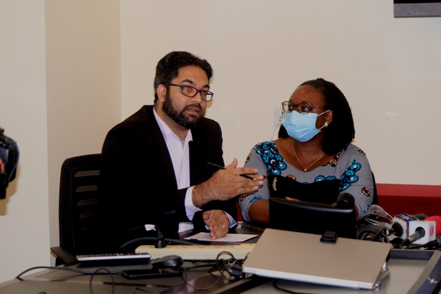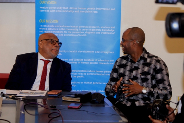Waziri wa Afya, Ustawi wa Jamii, Jinsia, Wazee na watoto- Zanzibar, Nassor Mazrui na Mwenyekiti wa Taasisi ya Watafiti na wanataaluma wa Vinasaba vya Binadamu Tanzania Siana Nkya.