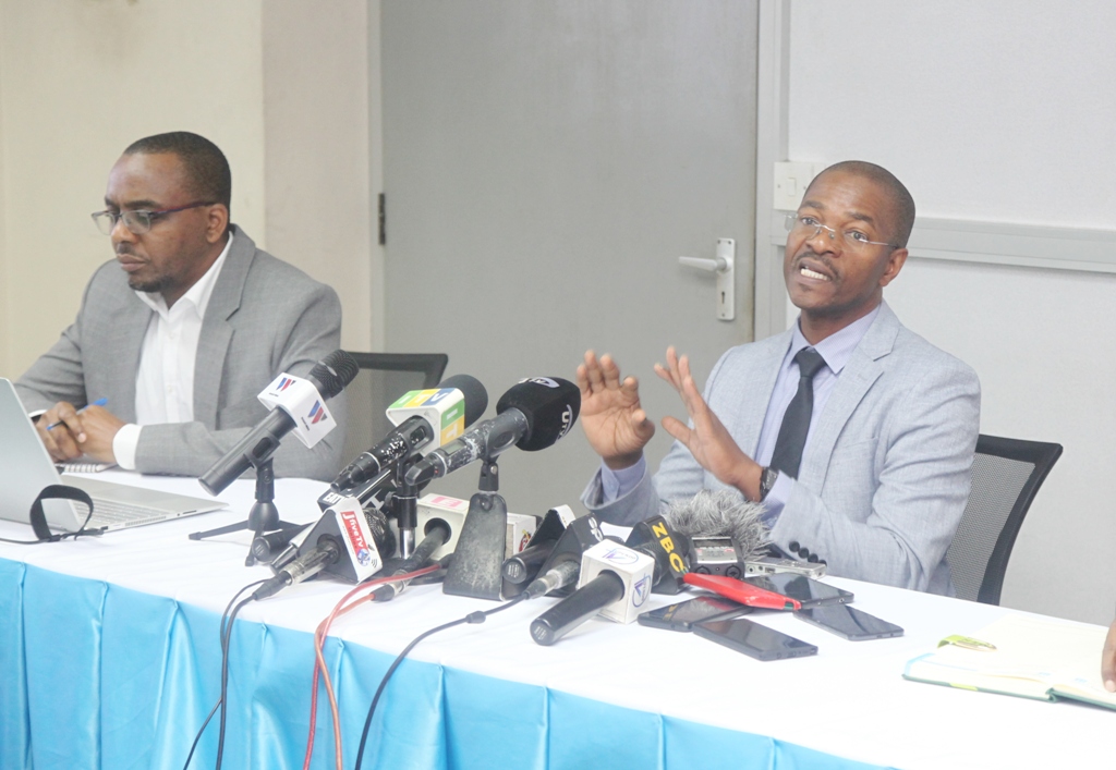 Mkurugenzi wa Huduma za Utabiri wa TMA, Dk. Hamza Kabelwa akizungumza na waandishi wa habari akitoa mwelekeo wa msimu wa mvua za vuli za Oktoba hadi Disemba 2021. Kushoto ni Meneja wa Kituo cha Huduma za Utabiri wa TMA, Samuel Mbuya.