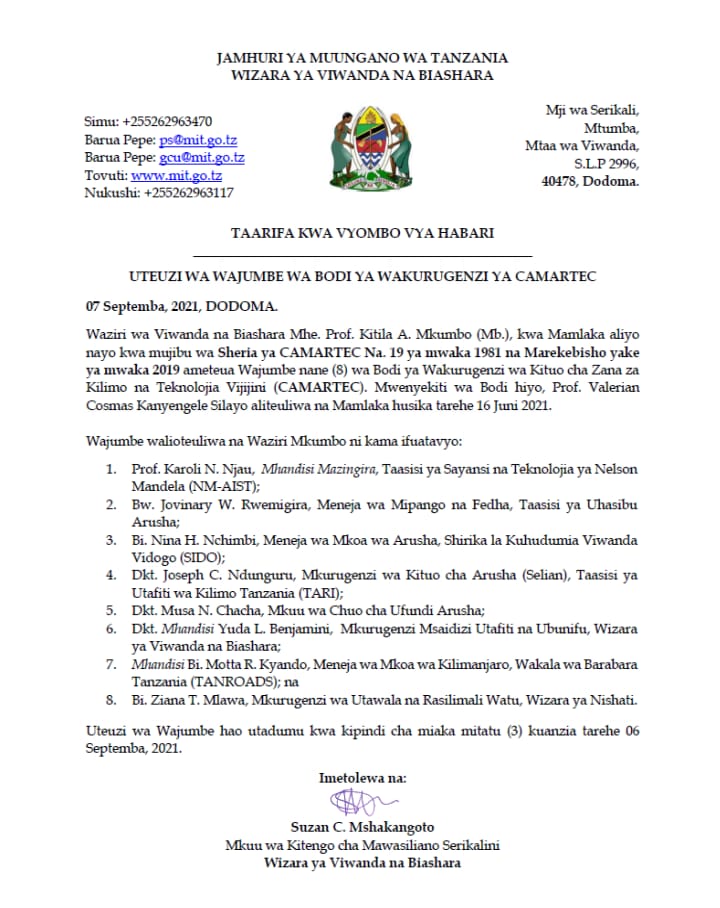 BiasharaUTEUZI WA WAJUMBE WA BODI YA WAKURUGENZI YA CAMARTEC Last updated: 2021/09/07 at 5:20 PM joseph 4 years ago Share SHARE joseph September 7, 2021 September 7, 2021 Share this Article Facebook Twitter Email Print Previous Article MAKAMU WA RAIS ASHIRIKI MKUTANO WA AFRICA – CARRICOM Next Article UHAKIKI VYAMA VYA SIASA WASHIKA KASI, ACT WAZALENDO, DEMOCRATIC PARTY WAHAKIKIWA