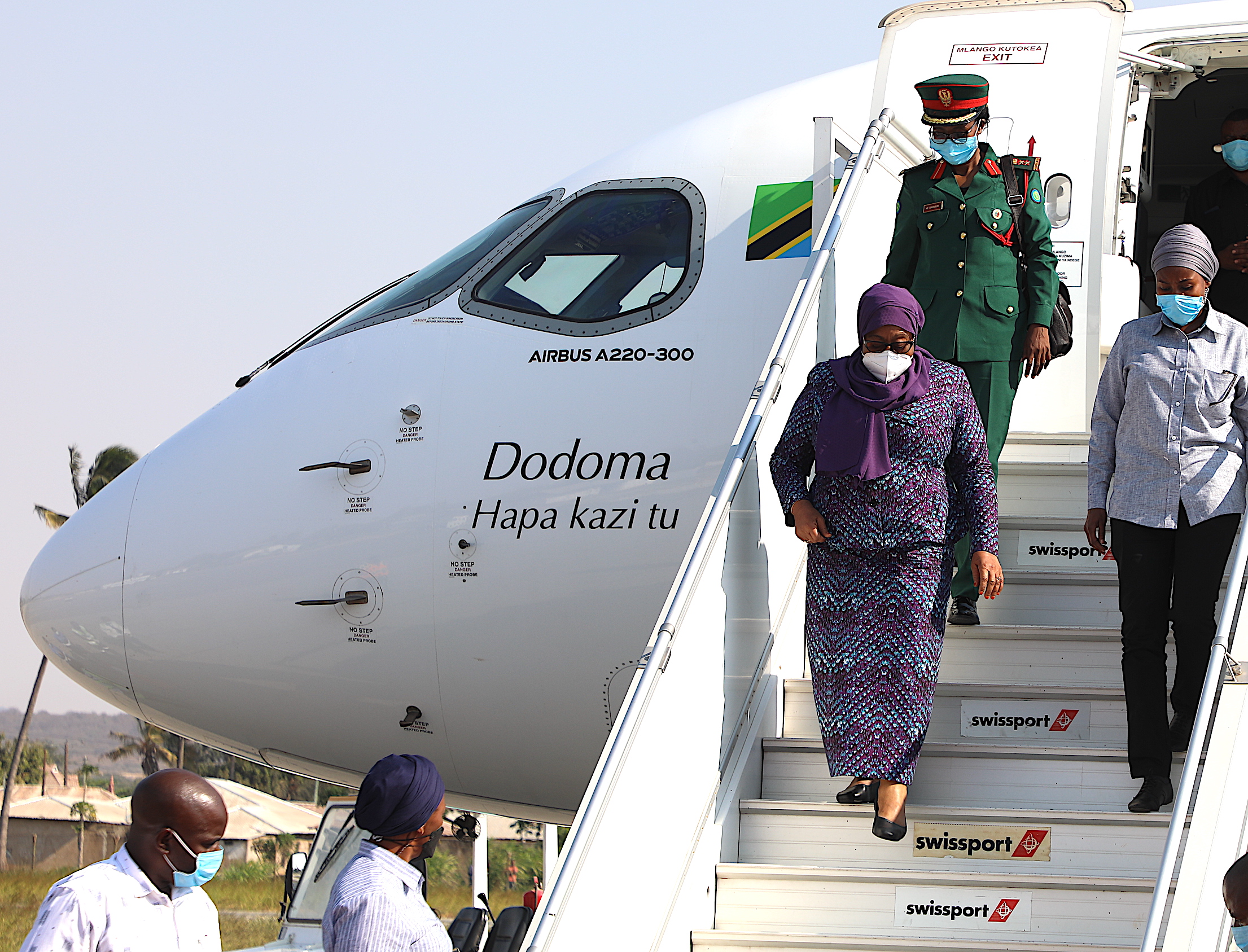 Rais wa Jamhuri ya Muungano wa Tanzania Mhe. Samia Suluhu Hassan, akiwasili katika Uwanja wa Ndege wa Dodoma akitokea  Jijini Mwanza baada ya kusimikwa kuwa Mkuu wa Machifu wote Tanzania na kuitwa jina la Hangaya yani ni Nyota inayong`aa, katika Tamasha la Utamaduni (Mila na Desturi zetu) lililofanyika leo Sept,08,2021 katika Viwanja vya Redcross Kisesa Magu, Mkoani Mwanza.