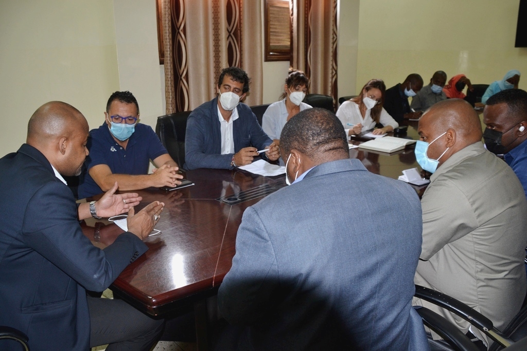 Mkurugenzi Mtendaji Hospitali ya Rufaa Mnazimmoja Msafiri Marijani (katikati) akizungumza na Wajumbe kutoka shirika la Italian Agency Development Cooperation mara walipofanya ziara Hospitalini hapo yenye lengo la kutathmini namna bora ya kusaidia uimarishwaji wa huduma za Afya Zanzibar.