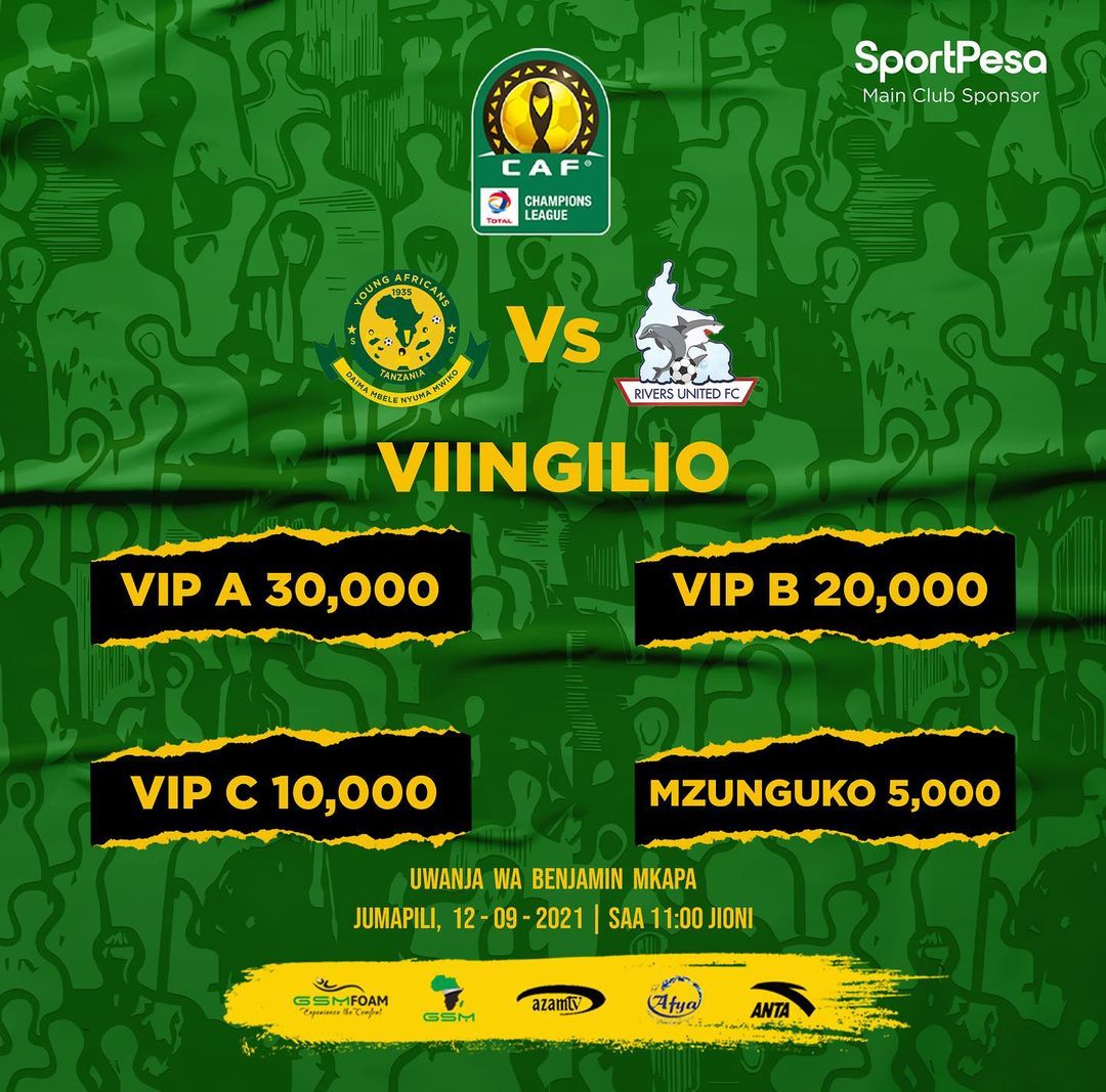 Yanga SC watakuwa wenyeji wa Rivers United Jumapili Saa 11:00 jioni katika mechi ya kwanza ya Raundi ya Awali Ligi ya Mabingwa Afrika Uwanja wa Benjamin Mkapa Jijini Dar es Salaam kabla ya timu hizo kurudiana Septemba 19 Uwanja wa Adokiye Amiesimaka Jijini Port Harcourt, Nigeria.