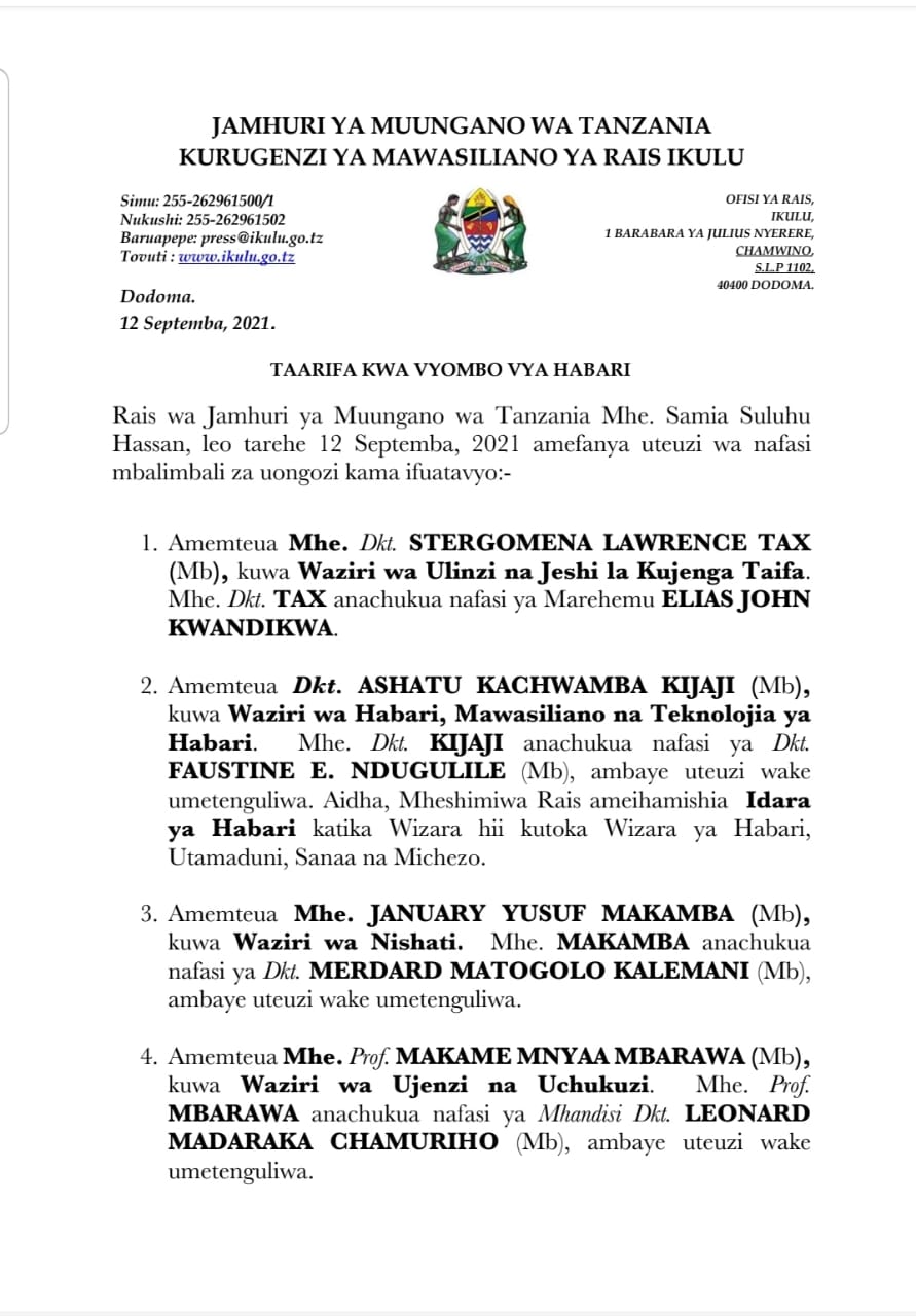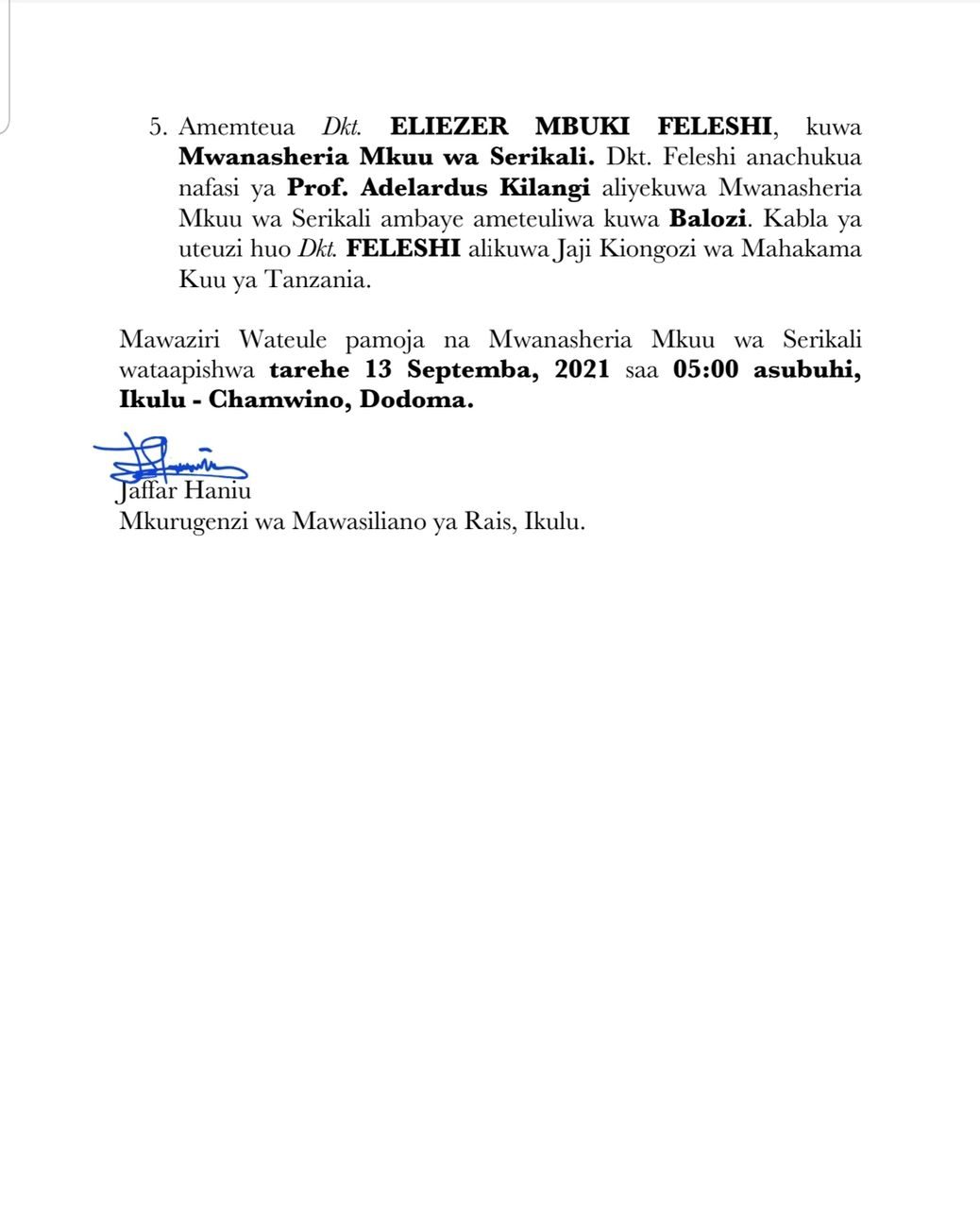 MchanganyikoRAIS SAMIA AFANYA UTEUZI WA VINGOZI MBALIMBALI Last updated: 2021/09/12 at 7:07 PM joseph 4 years ago Share SHARE joseph September 12, 2021 September 12, 2021 Share this Article Facebook Twitter Email Print Previous Article RAIS SAMIA AMTEUA DKT.ABDUL RAHMAN SHABANI MWANGA KUWA KAMISHNA WA MADINI Next Article PITIA VICHWA VYA HABARI KATIKA MAGAZETI YA LEO SEPTEMBER 13,2021
