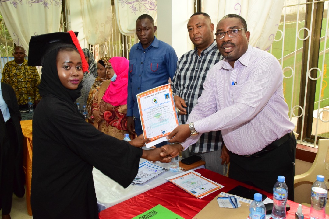 Mwenyekiti wa Chama cha Mapinduzi (CCM) jijini Ilala Bw.Ubaya Chuma akikabidhi vyeti kwa wahitimu wa Chuo cha Furahika Education College katika Mahafali ya Nane ya Chuo hicho yaliofanyika jana Ilala Jijini Dar es Salaam