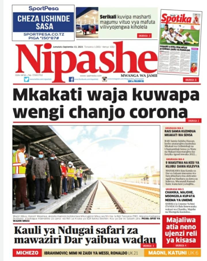 MagazetiPITIA VICHWA VYA HABARI KATIKA MAGAZETI YA LEO SEPTEMBER 13,2021 Last updated: 2021/09/13 at 5:57 AM Alex Sonna 4 years ago Share SHARE Alex Sonna September 13, 2021 September 13, 2021 Share this Article Facebook Twitter Email Print Previous Article RAIS SAMIA AFANYA UTEUZI WA VINGOZI MBALIMBALI Next Article HARUSI YA VICTOR CHRISTOPHER MAJII NA CHERLY MWAKA YAKUSANYA MAMIA YA WATU MTINKO SINGIDA VIJIJINI