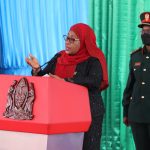Rais wa Jamhuri ya Muungano wa Tanzania Mheshimiwa Samia Suluhu Hassan akizungumza na Viongozi mbalimbali mara baada ya tukio la Uapisho lililofanyika katika viwanja vya Ikulu Chamwino mkoani Dodoma. PICHA NA IKULU