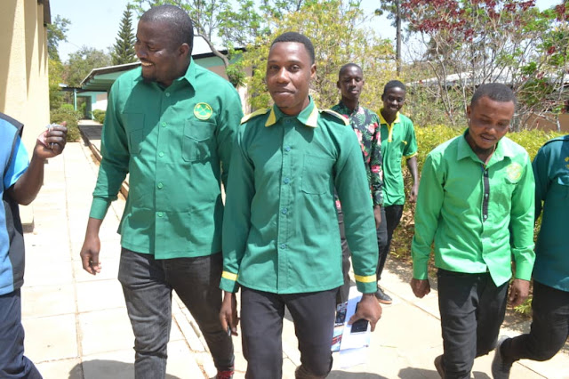 Makamu Mkuu wa chuo hicho Gimenye Motiba akiongoza viongozi na baadhi ya wajumbe wa UVCCM kuangalia ukarabati mkubwa wa miundombinu uliofanywa na serikali ndani ya chuo hicho.Katibu wa Seneti Paulo Dotto (katikati) akiongoza wajumbe na viongozi wa UVCCM kuelekea kwenye hafla ya uzinduzi huo.