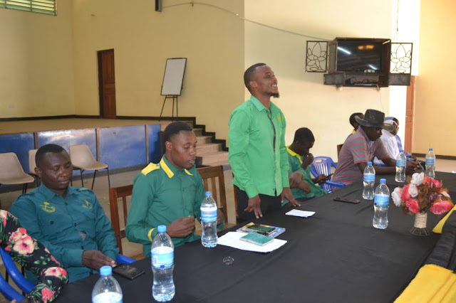 Katibu wa Idara ya Seneti Vyuo na Vyuo Vikuu ndani ya Umoja wa Vijana wa Chama Cha Mapinduzi (UVCCM) Mkoa wa Singida Paulo Dotto akizungumza wakati wa uzinduzi wa Tawi jipya la UVCCM ndani ya Chuo cha Ualimu Kinampanda, kilichopo Wilaya ya Iramba mkoani Singida.Matukio ya hafla ya uzinduzi yakiendelea.