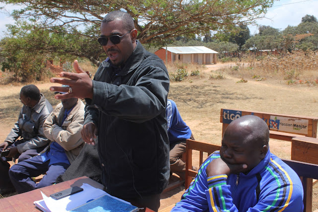 Hassan Moyo akisisitiza jambo kwa wahudumu wa afya alipokuwa kwenye moja ya mikutano ya hadhara ambapo ameamua kufanya ziara kijiji kwa kijiji kusikiliza kero za wananchi wa wilaya hiyo