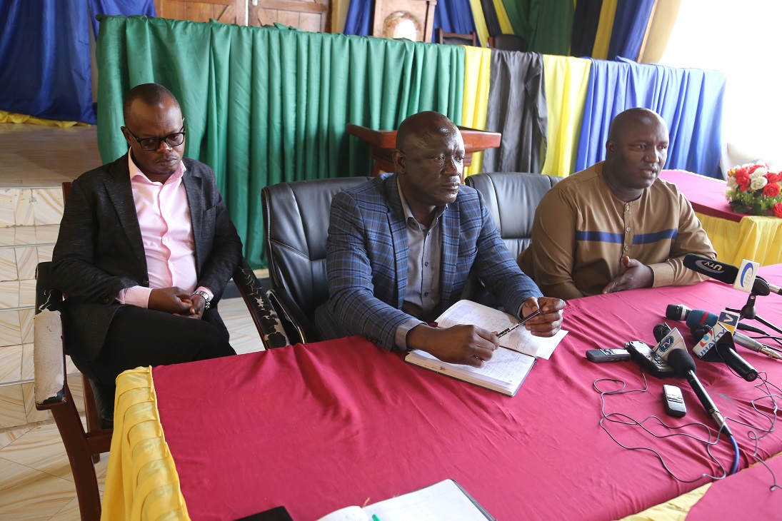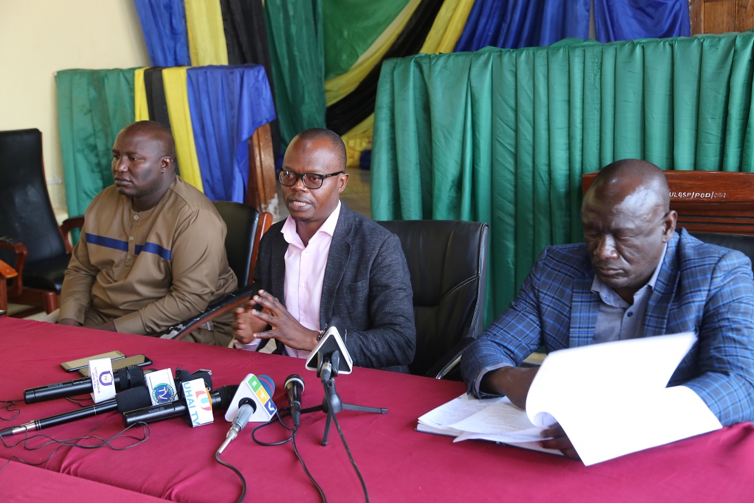 Mstahiki Meya wa Manispaa ya Tabora Ramadhan Kapela (kulia) akizungumza na waandishi wa habari leo. Wengine ni Mkuu wa Wilaya ya Tabora Dkt. Yahya Nawanda(kushoto) na Katikati ni Mkurugenzi Mteandaji wa Manispaa ya Tabora Dkt.Peter Nyanja