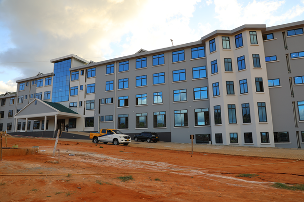 Hali ya Jengo la Hospitali ya Rufaa Kanda ya Kusini Mtwara linalojengwa na NHC ilivyo hivi sasa.