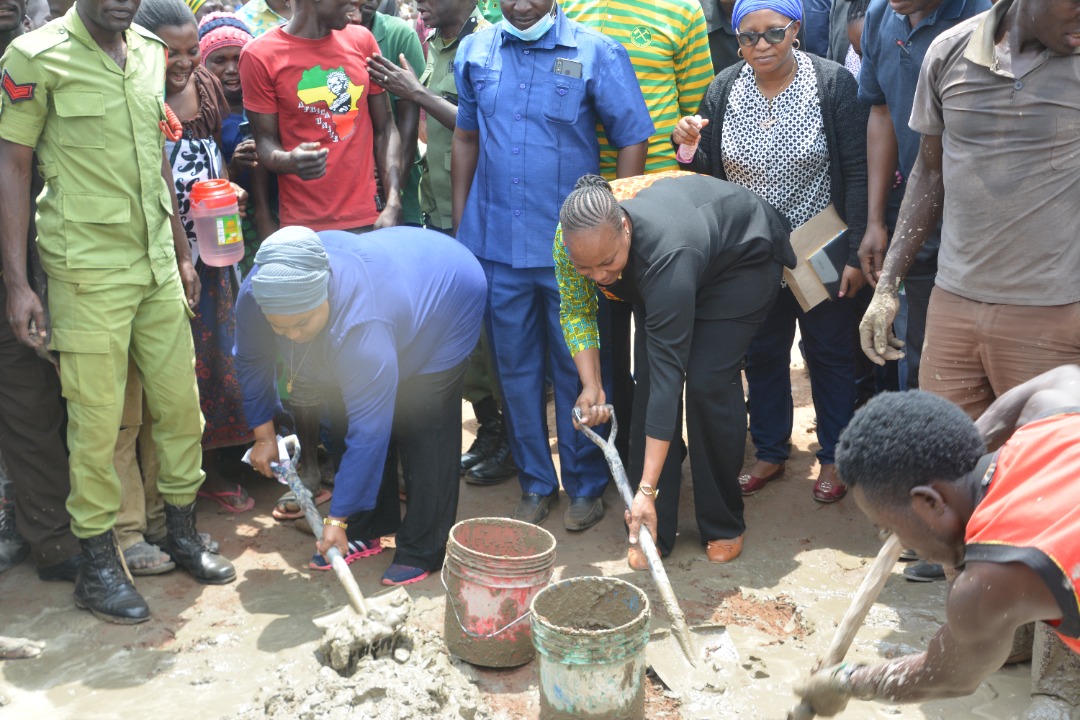 Akiwa katika eneo hilo, Mhe. Mwanaidi alishiriki kuamsha ya ari ya kujiletea maendeleo kwa kuchanganya na kumwaga zege katika ujenzi wa zahanati ya Kaniha na baadaye kuuunga mkono juhudi zao kwa kuchangia mifuko 50 ya saruji ikiwa ni katika ujenzi wa zahanati hiyo.