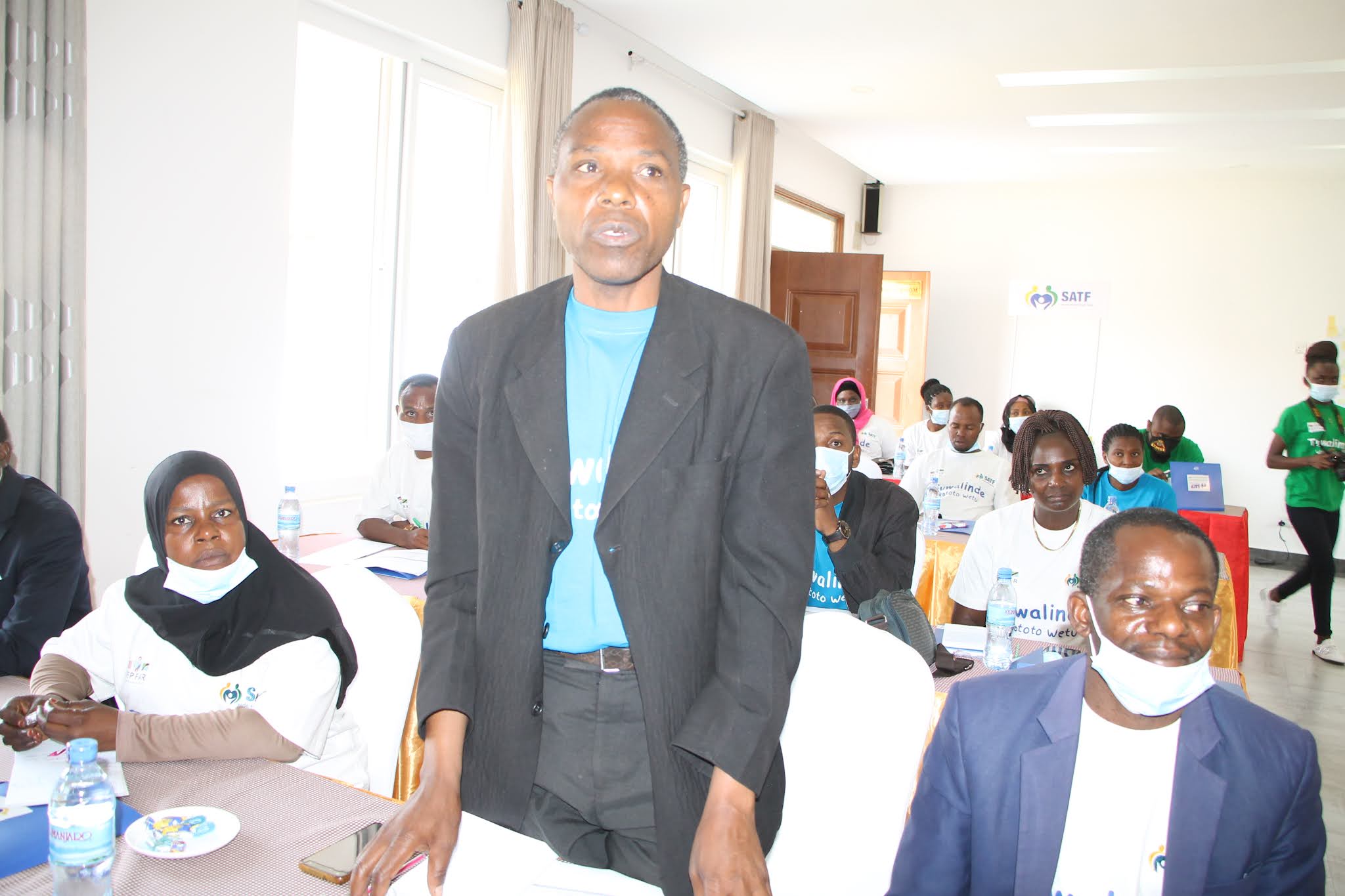 Mwalimu Nickson Sanga kutoka Kondoa Dodoma akichangia jambo kwenye mafunzo hayo.