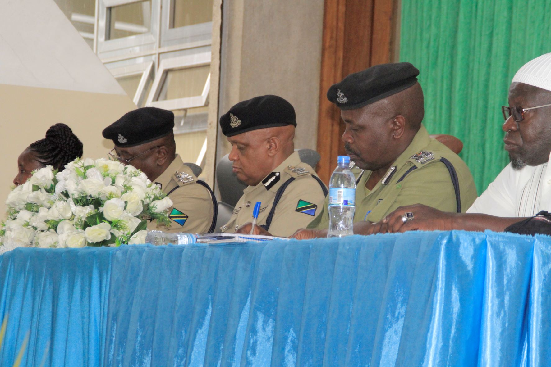 Kamishna wa Operesheni na Mafunzo ya Jeshi la Polisi Nchini CP Liberates Sabas katika kulia kwake ni Kamanda wa Polisi wa Mkoa wa Mwanza SACP Ramadhani Ng’anzi na kushoto kwake ni kamishna msaidizi mwandamizi wa Polisi ambaye ni mkuu wa Operesheni maalum za Jeshi la Polisi SACP Mihayo Kagolo Msikhela wakisikiliza na kuandika maoni ya wadau wa uvuvi Kanda ya Ziwa (hawapo Pichani) baada ya kumalizika kwa ufunguzi wa kikao kilichofanyika katika ukumbi wa BOT jijini Mwanza kinachohusu mikakati ya kupambana na Uhalifu ndani ya Ziwa Victoria.