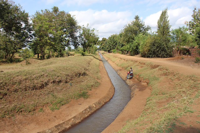 Picha ikionesha Mfereji wa upili unaopeleka maji mashambani katika skimu ya kilimo cha Umwagiliaji Mombo.