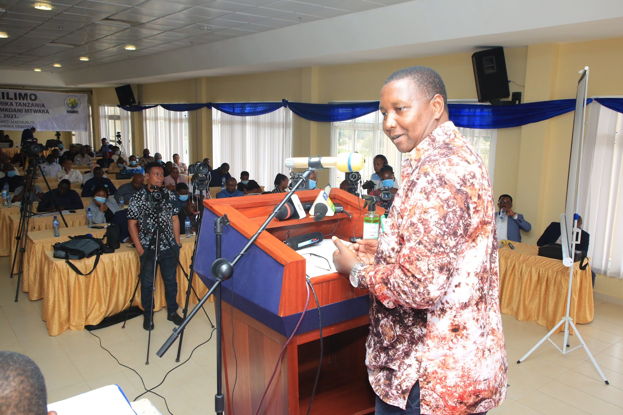 Adolf Mkenda akisisitiza jambo wakati akifungua mafunzo ya kuwajengea uwezo