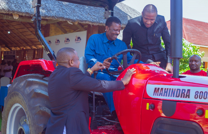 Mratibu wa uwekezaji Ofisi ya Mkuu wa Mkoa wa Lindi Bw Gaudence Nyamwihura (katikati) akijaribu ubora wa moja ya matrekta yatakayotolewa kwa washindi wa kampeni ya ‘Vuna zaidi na NBC Shambani’ mahususi kwa wakulima wa korosho mikoa ya Lindi na Mtwara wakati wa hafla ya uzinduzi wa kampeni hiyo Mkoani Lindi mapema wiki hii. Wanaoshuhudia ni pamoja na Mkuu wa Bidhaa na Mauzo wa benki ya NBC Bw Abel Kaseko (Kulia) na Meneja wa Benki hiyo Mkoa wa Lindi Bw Iovin Mapunda.