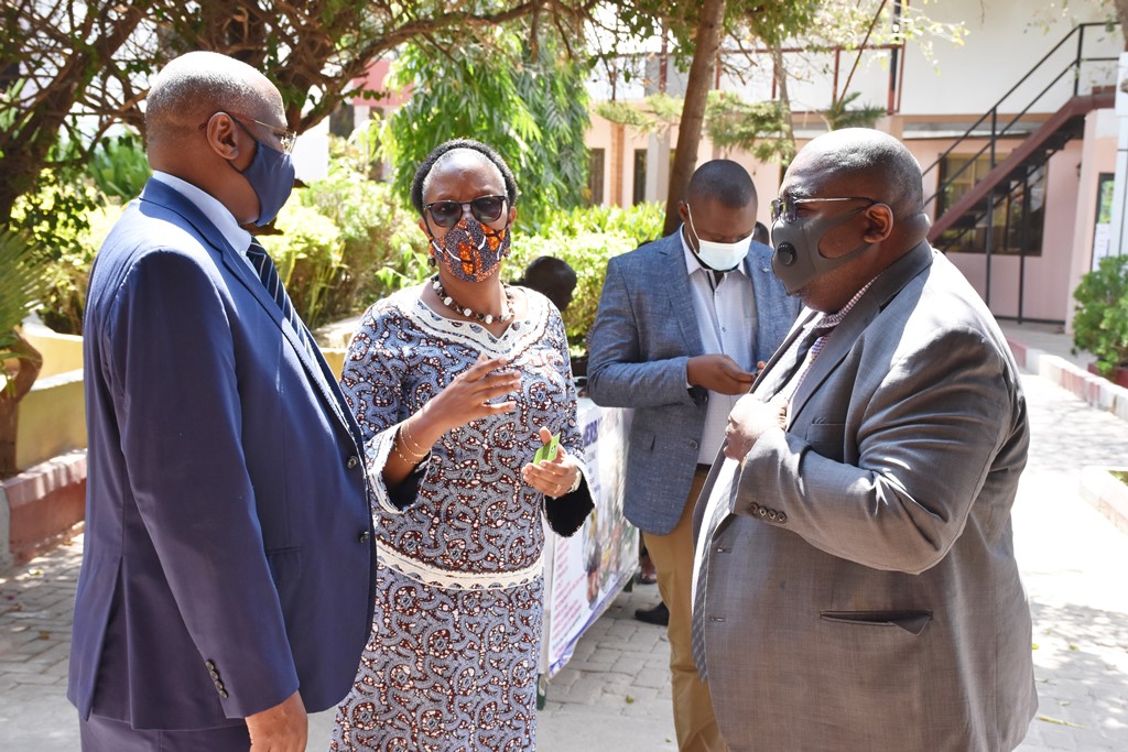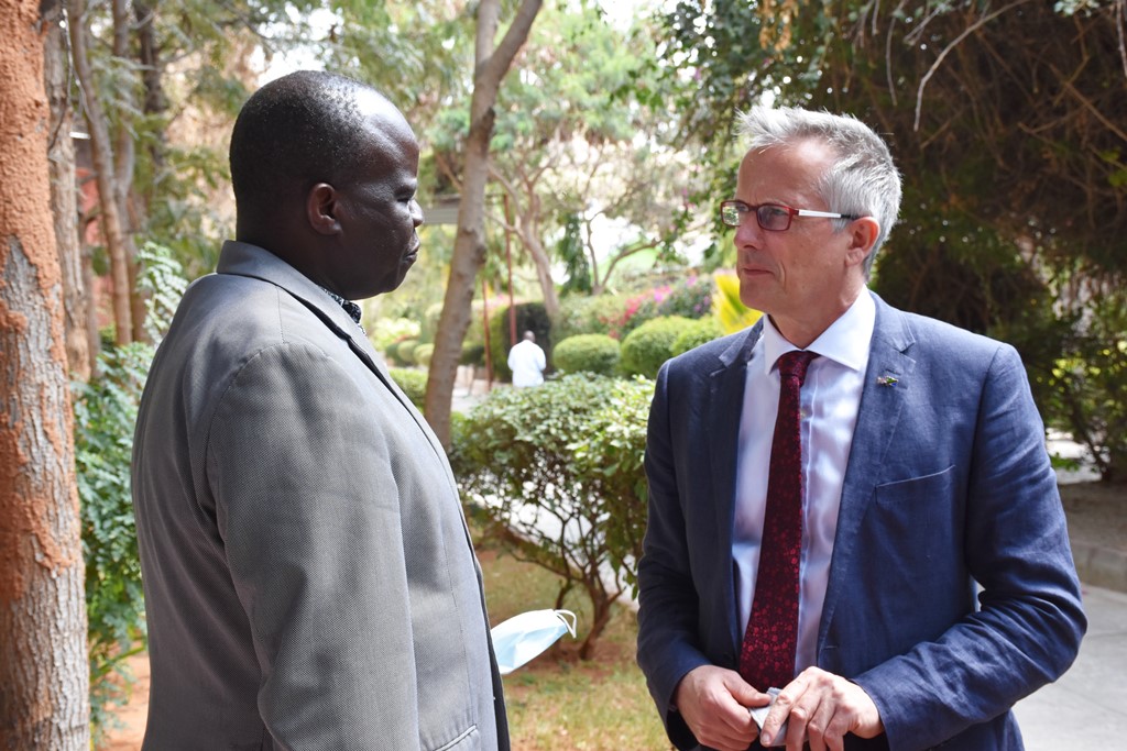 Balozi wa Uingereza nchini Mhe. David Concar akizungumza na Bw. Richard Muyungi ambaye ni Mjumbe wa Green Climate Fund kwa niaba ya Afrika, kuhusu Maandalizi ya Mkutano wa Glasgow hasa matarajio ya Afrika na Tanzania katika Mkutano huo kuhusu upatikanaji wa fedha za kukabiliana na mabadiliko ya Tabianchi.