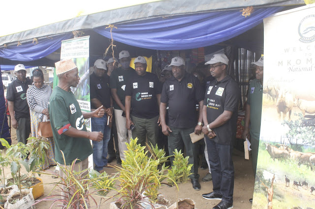 Mkuu wa wilaya ya Same Edward Mpogolo wa kwanza kulia akipata maelezo wakati wa maadhimisho hayo kushoto ni Kamishna Mwandamizi wa Uhifadhi Kanda ya Kaskazini Herman Batiho