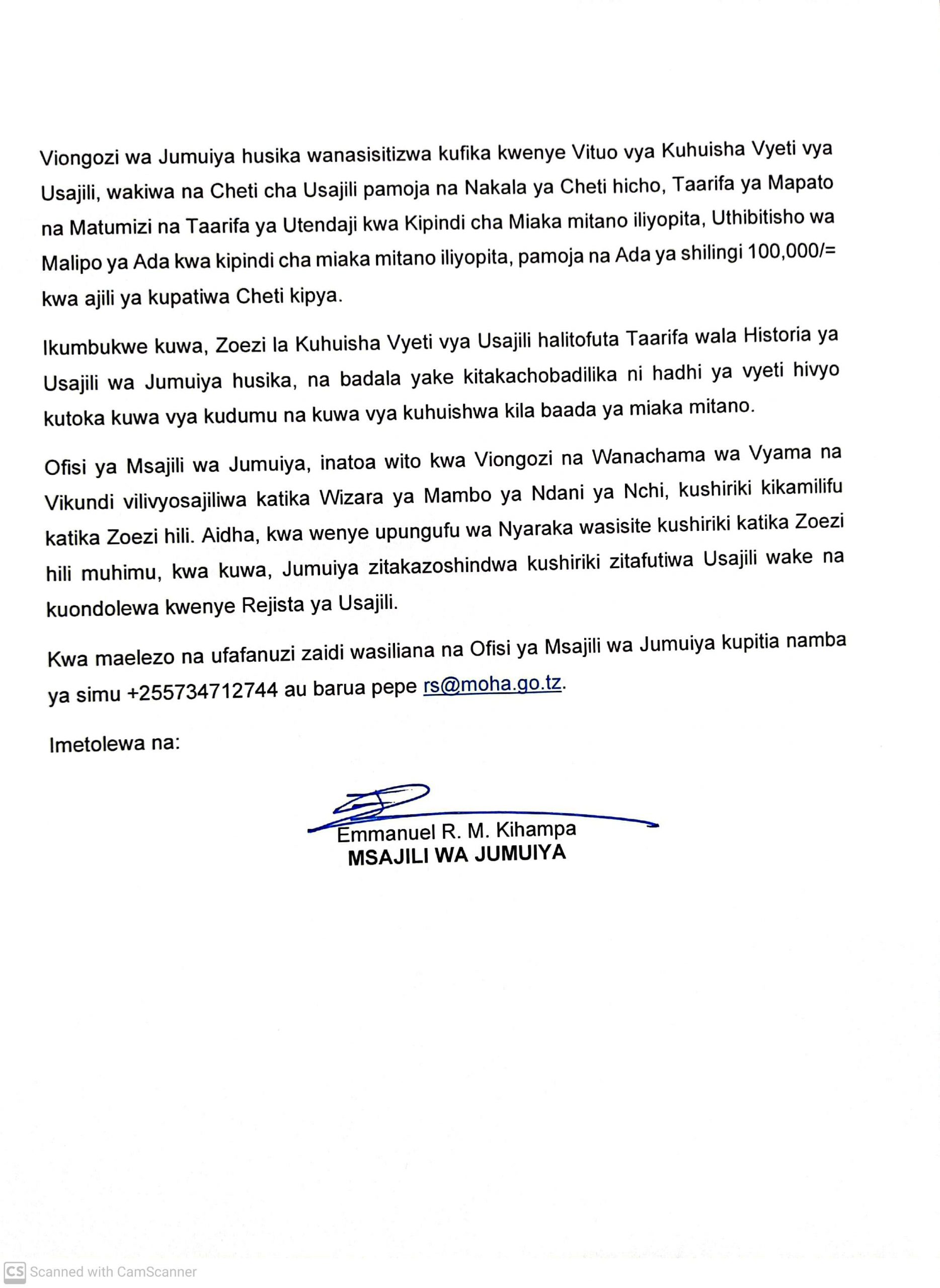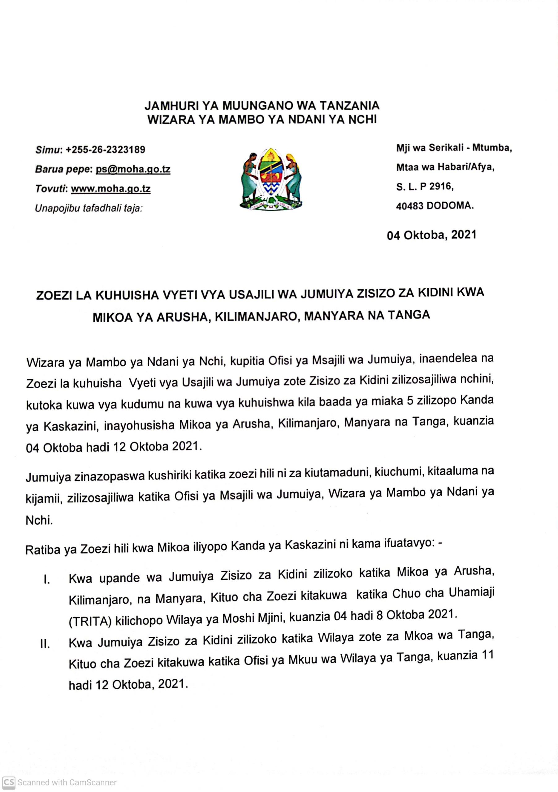 MchanganyikoZOEZI LA KUHUISHA VYETI VYA USAJILI WA JUMUIYA ZISIZO ZA KIDINI KWA MIKOA YA ARUSHA, KILIMANJARO, MANYARA NA TANGA. Last updated: 2021/10/04 at 5:26 PM joseph 4 years ago Share SHARE joseph October 4, 2021 October 4, 2021 Share this Article Facebook Twitter Email Print Previous Article NMB YAZINDUA HATI YA KIAPO CHA HUDUMA KWA WATEJA Next Article CMSA YAZINDUA WIKI YA WAWEKEZAJI KATIKA MASOKO YA MITAJI DUNIANI MAMLAKA YA MASOKO YA MITAJI NA DHAMANA (CMSA)