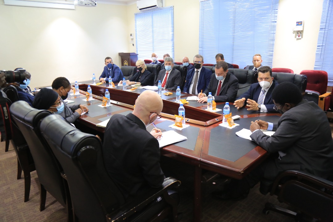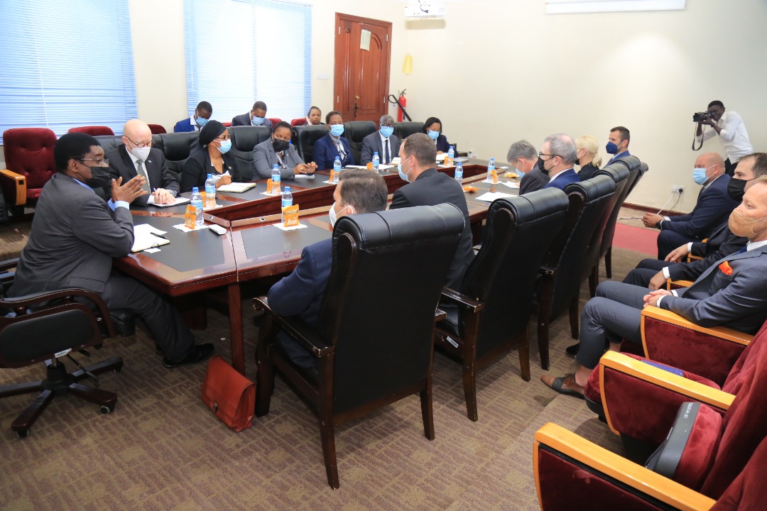 Waziri wa Mambo ya Nje wa Jamhuri ya Czech Mhe. Miloslav Staŝek akiongea na uongozi wa Kituo cha Uwekezaji Tanzania (TIC), ulioongozwa na Mkurugenzi Mtendaji Dkt. Maduhu Kazi leo jijini Dar es Salaam