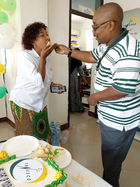 Baadhi ya wafanyakazi waliohudhuria sherehe hiyo ambayo ilikwenda sanjari na kukata keki walisema maadhimisho hayo yamewaongezea ari ya kufanya kazi kwa bidii na lengo likiwa ni kuwatumikia wananchi.