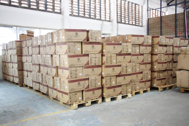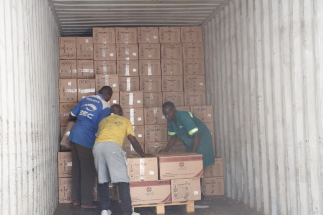 Dawa zikishushwa kutoka kwenye kontena na kuwekwa gharani tayari kwa usambazaji.