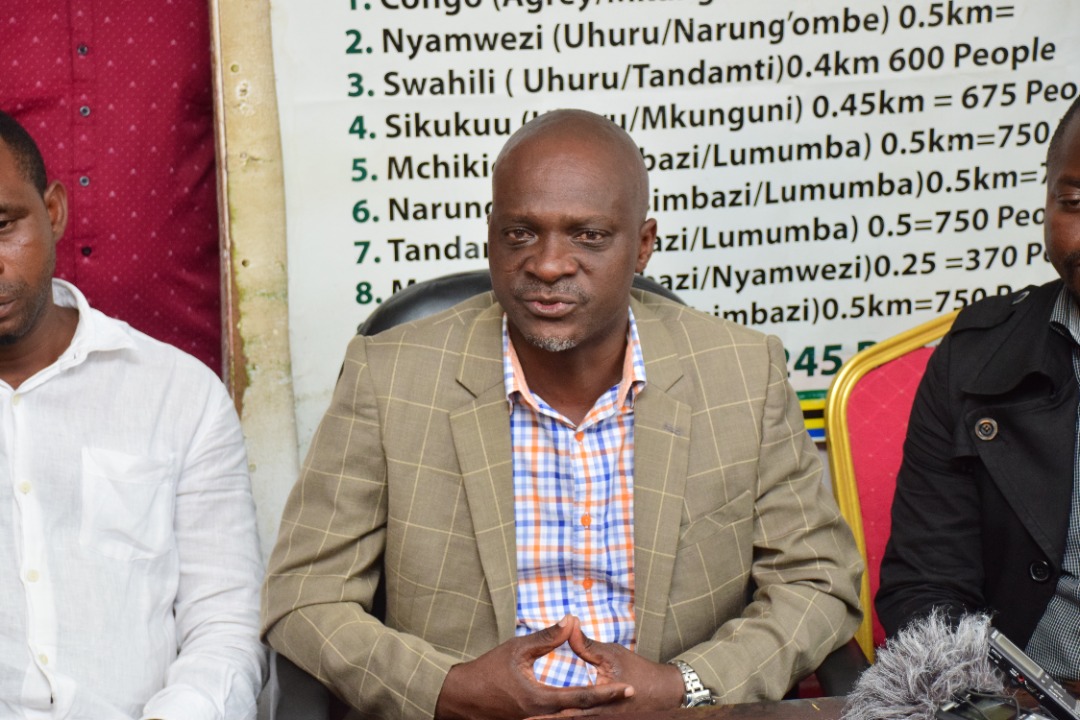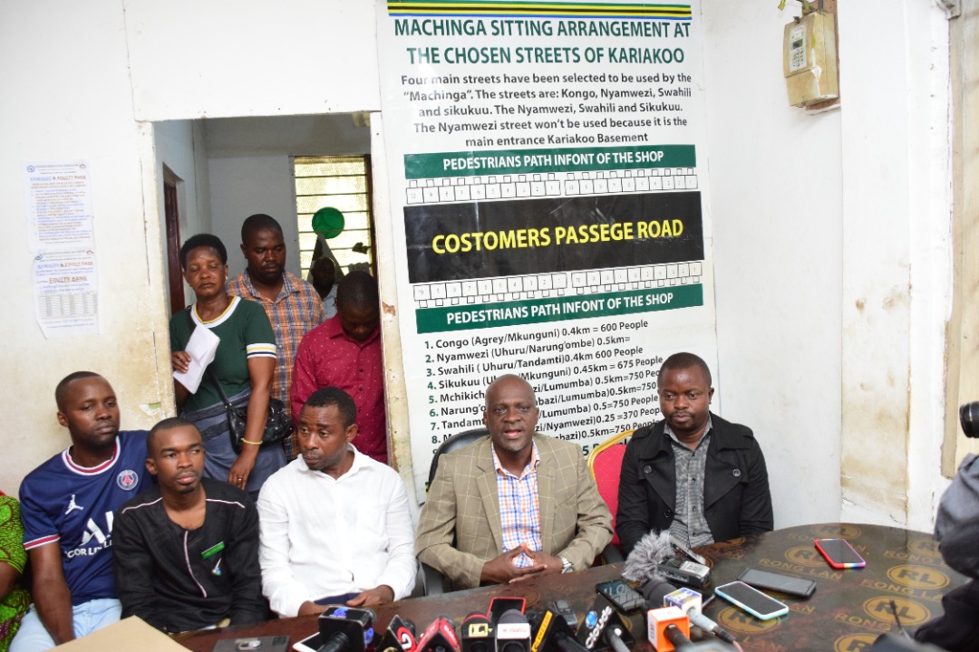Makamu Mwenyekiti wa Shirikisho la Umoja wa wamachinga Taifa Bw.Steven Lusinde akizungumza na waandishi wa habari katika Ofisi za Chama hicho leo Kariakoo Jijini Dar es Salaam.