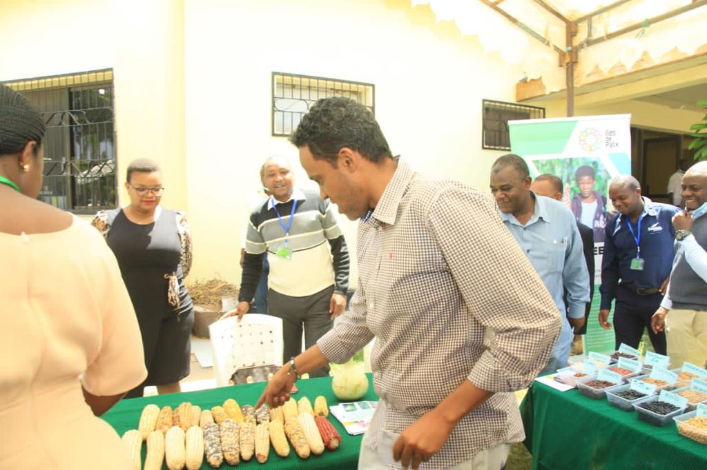 Naibu Waziri wa Kilimo Mhe. Hussein Bashe akiangalia nafaka zilizohifadhiwa kwa kutumia dawa asilia bila kutumia kemikali katika banda la Iles De Paix wakati wa Mkutano wa pili wa Kitaifa unao hamasisha kilimo asilia(Ecological Organic Agriculture) unaofanyika jijini Dodoma kwa siku mbili.