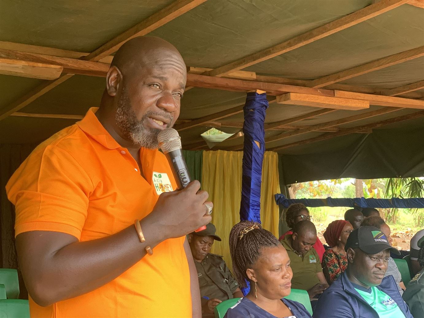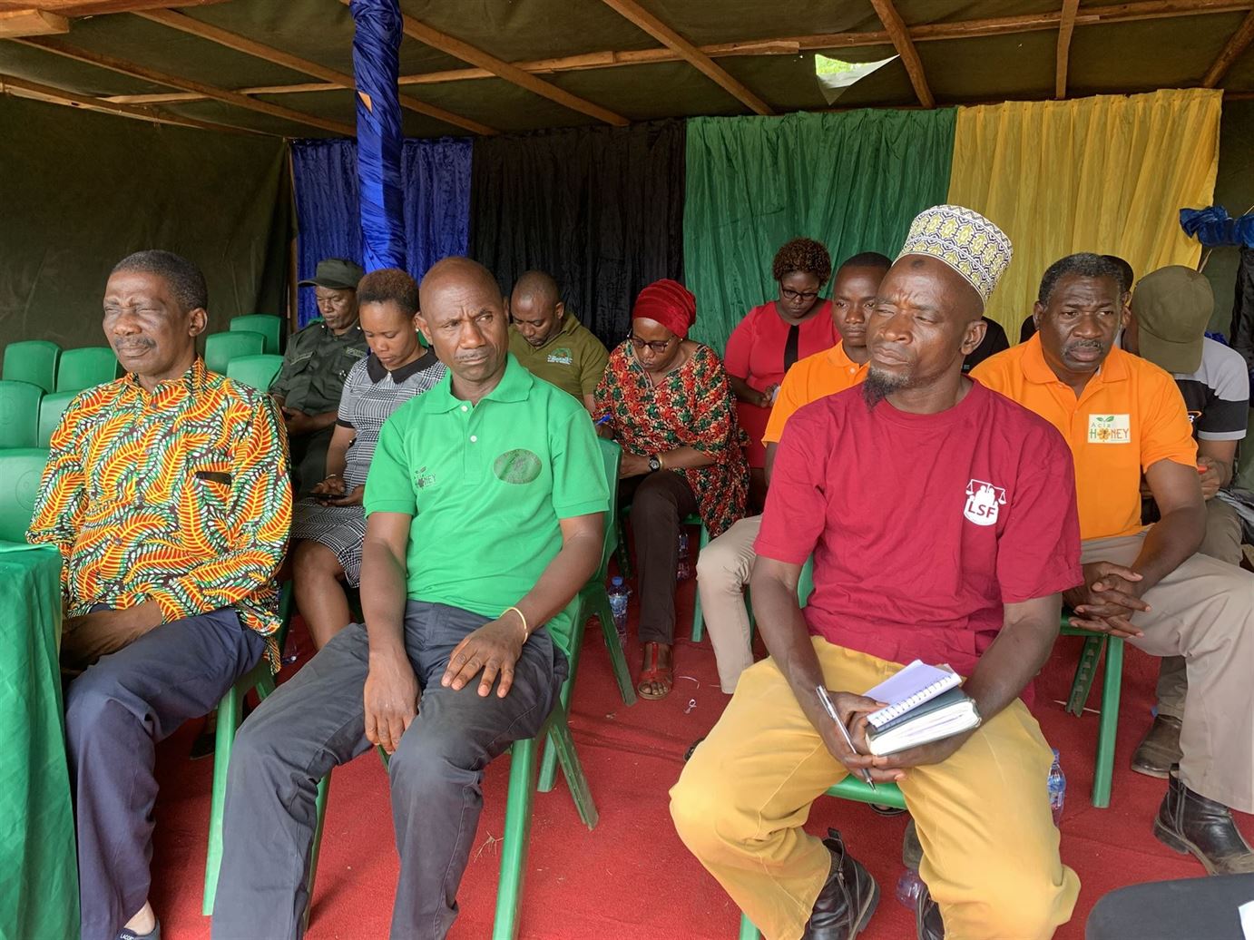 ViViongozi mbalimbali wakifuatilia maelezo ya ufugaji bora wa nyuki na kujionea vifaa vya kisasa vya ufugaji vilivyotolewa kwa ajili ya mradi huo wa Acla Honey.