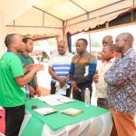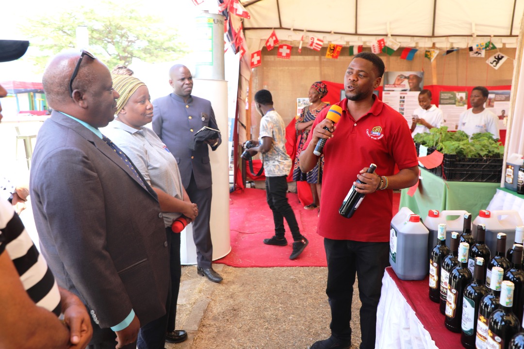 Spika wa Bunge, Mhe. Job Ndugai akimsikiliza Afisa Mauzo wa Kampuni ya Bakel, Bw. Deogratius Mlewa wakati alipotembelea Banda la kampuni hiyo leo katika siku ya Tamasha la Mvinyo (Wine festival) linaloendelea katika Viwanja vya Mashujaa Jijini Dodoma, Novemba 6, 2021