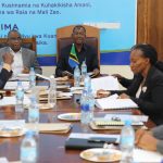 Mwenyekiti wa Bodi ya Wakurugenzi Mamlaka ya Majisafi na Usafi wa Mazingira Dar es Salaam (DAWASA) Jenerali Mstaafu Davis Mwamunyange (wa pili kulia) akipata maelezo kutoka kwa Mkurugenzi wa miradi DAWASA Mhandisi Ramadhani Mtindasi (wa kwanza kulia) kuhusu utekelezaji wa mradi wa maji Kigamboni unaohusisha uendelezaji wa visima virefu vya Maji na ujenzi wa tanki la lita 15 ambao utekelezaji wake umefikia asilimia 55.