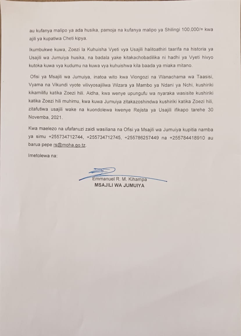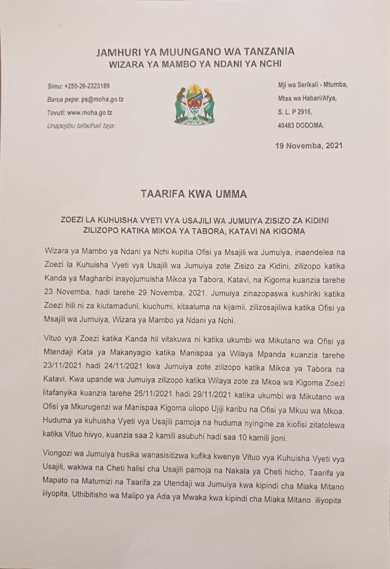 MchanganyikoZOEZI LA KUHUISHA VYETI VYA USAJILI WA JUMUIYA ZISIZO ZA KIDINI ZILIZOPO KATIKA MIKOA YA TABORA, KATAVI NA KIGOMA. Last updated: 2021/11/19 at 1:52 PM joseph 4 years ago Share SHARE joseph November 19, 2021 November 19, 2021 Share this Article Facebook Twitter Email Print Previous Article MHE. SAMIA KUTUA ZANZIBAR KUWAHUTUBIA UWT. Next Article DED KIBAHA AWAPONGEZA BODI YA MAJI WAMI/RUVU KWA KUTOA ELIMU ENDELEVU KATIKA UTUNZAJI WA VYANZO VYA MAJI