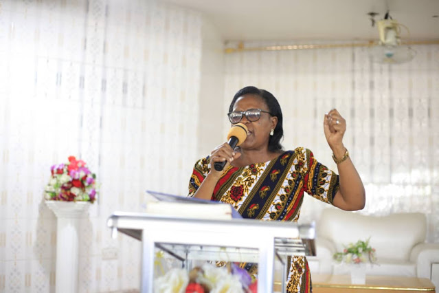 Mke wa Askofu Ndabila Janeth Ndabila akifanya maombi ya kuliombea Taifa.