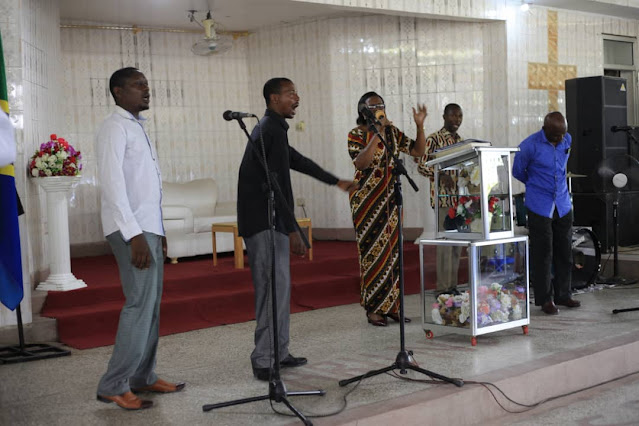 Mke wa Askofu Ndabila, Janeth Ndabila akiongoza maombi ya kuiombea jamii alimsihi Mungu awaondoe watu wabaya wanaotaka kuiharibu jamii ya kitanzania hususan vijana wanaotumia vibaya mitandao ya