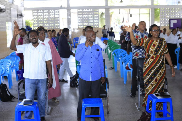 Waumini na viongozi mbalimbali wa kanisa hilo wakiwa katika maombi.