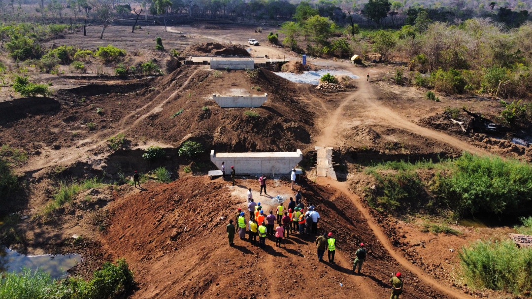 Muonekano wa ujenzi wa daraja la mto Mbwemkuru linalounganisha wilaya za Ruangwa na Liwale mkoani Lindi. Waziri Mkuu, Kassim Majaliwa alikagua maendeleo ya ujenzi huo, Novemba 23, 2021. (Picha na Ofisi ya Waziri Mkuu)