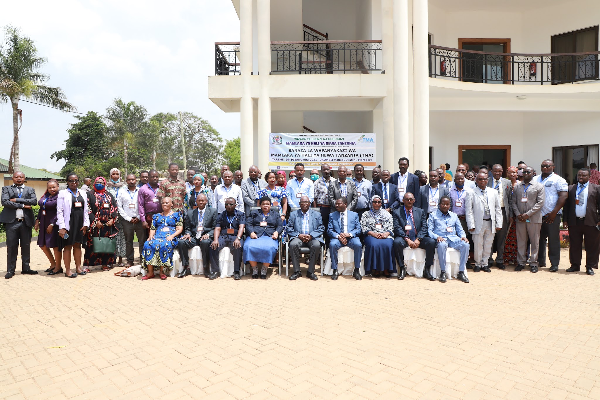 Washiriki mbalimbali wa Baraza la Wafanyakazi wa Mamlaka ya Hali ya Hewa Tanzania (TMA) kwenye picha ya pamoja na Mgeni rasmi katika Ukumbi wa Magadu, Morogoro.