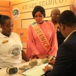 –Rais wa Jamhuri ya Muungano wa Tanzania Mhe. Samia Suluhu Hassan, akishuhudia tukio la Utiaji Saini makubaliano kati ya Serikali na Kampuni za Uchimbaji Madini za Black Rock Mining Limited, Strandline Resources Limited na Nyanzaga katika Ukumbi wa Mikutano wa Kimataifa wa Julius Nyerere Convention Centre Jijini Dar es Salaam leo tarehe 13 Desemba 2021.