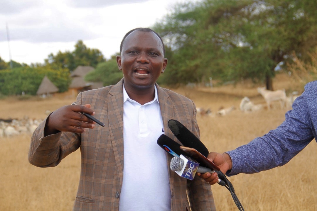 Meneja Masoko wa Kampuni ya Ranchi za Taifa (NARCO),Bw.Mnzava Immanuel,akizungumza na waandishi wa habari kwa niaba ya Mkurugenzi Mtendaji wa Kampuni hiyo, Prof.Peter Msoffe wakati akitoa taarifa kuhusu punguzo la bei msimu wa sikukuu kwa mbuzi na kondoo ili kuhamasisha wananchi kula nyama hiyo leo Desemba 20,2021 wilayani Kongwa Mkoani Dodoma.