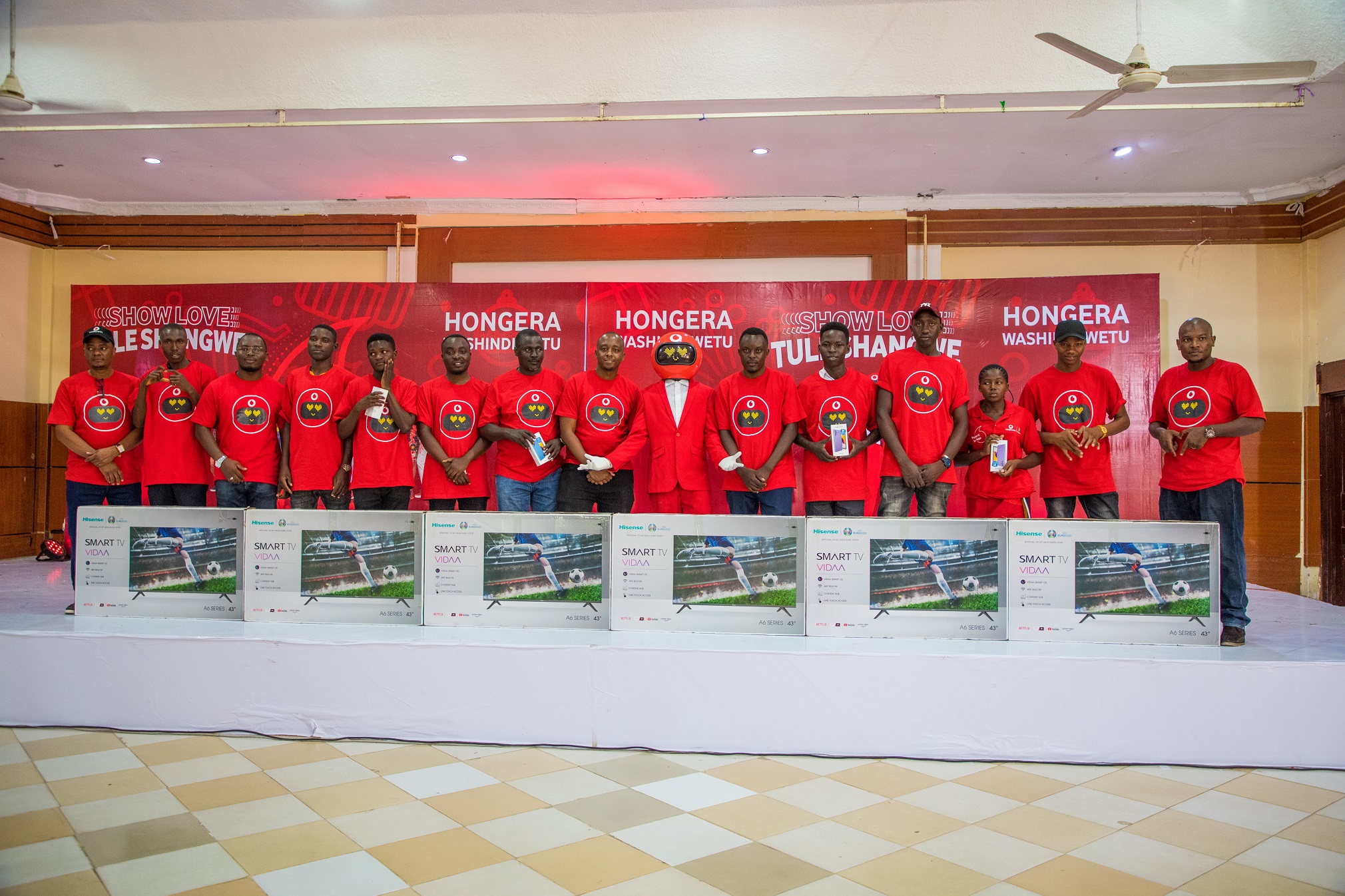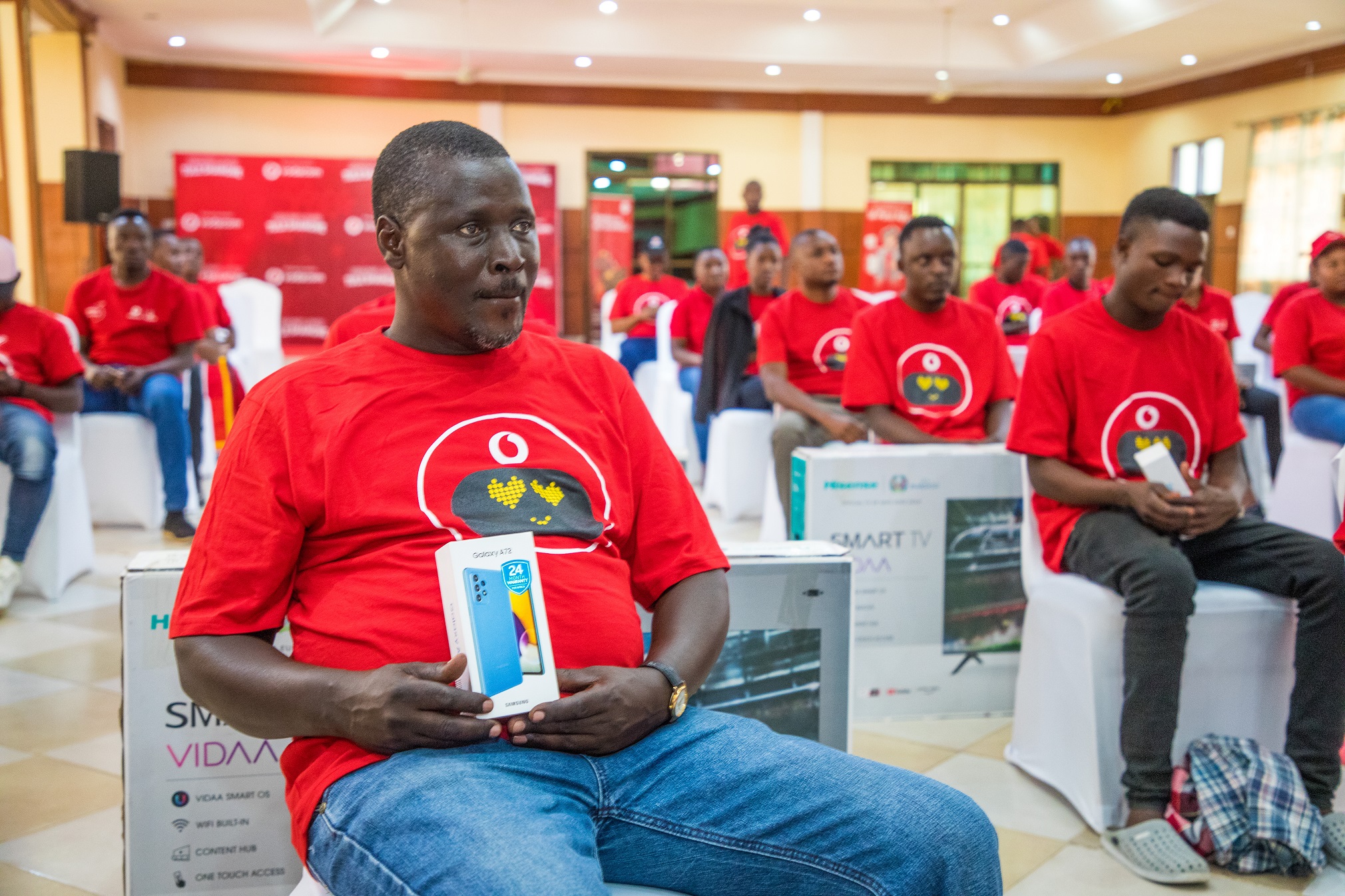 Mkuu wa Mauzo Vodacom kanda ya kati, Joseph Sayi (kushoto) na Meneja Mkakati wa Biashara wa kanda hiyo, Baraka Siwa (kulia) wakiwa katika picha ya pamoja na baadhi ya washindi wa wiki ya pili wa promosheni ya “Show Love,Tule Shangwe ” jumla ya washindi 16 wamejishindia Tv za kisasa (smart TV) sita, simu janja (smartphone) sita na washindi wanne wamejishindia pesa taslimu. Ili ushinde zawadi kutoka Vodacom unatakiwa kununua bando au kutumia huduma ya M-Pesa kwa umpendae kwa kupiga *149*01#.