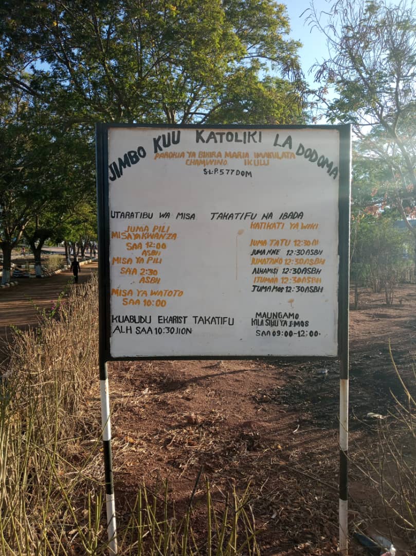Manawake hawa walienda hadi katika bango linaloitambulisha parokia hii wakawa kama wanasoma muda wa Ibada za parokia hii. Wao wako mbele na mimi naiona miili yao kwa nyuma, nikajisemea mwenyewe, yule atakuwa mtawa kaja kumsalimia ndugu yake, kwa hiyo ndugu yake atakuwa mgeni, au ndugu yake huyo ni mvivu wa kwenda kanisa kwa hiyo hata muda wa ibada hajui? Nilihisi hivyo, ndiyo sababu ya wao kutazama muda. Kwani angekuwa mtawa mwenyeji asingali tazama muda huo katika bango.