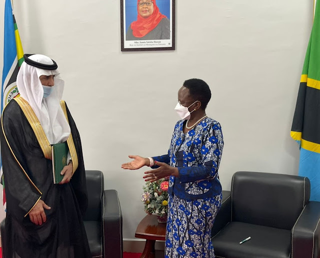 | Balozi Mulamula akimkaribisha Mhe.Abdullah bin Ali Alsheryan katika ofisi za Wizara zilizopo mji wa Serikali, Mtumba Jijini Dodoma |