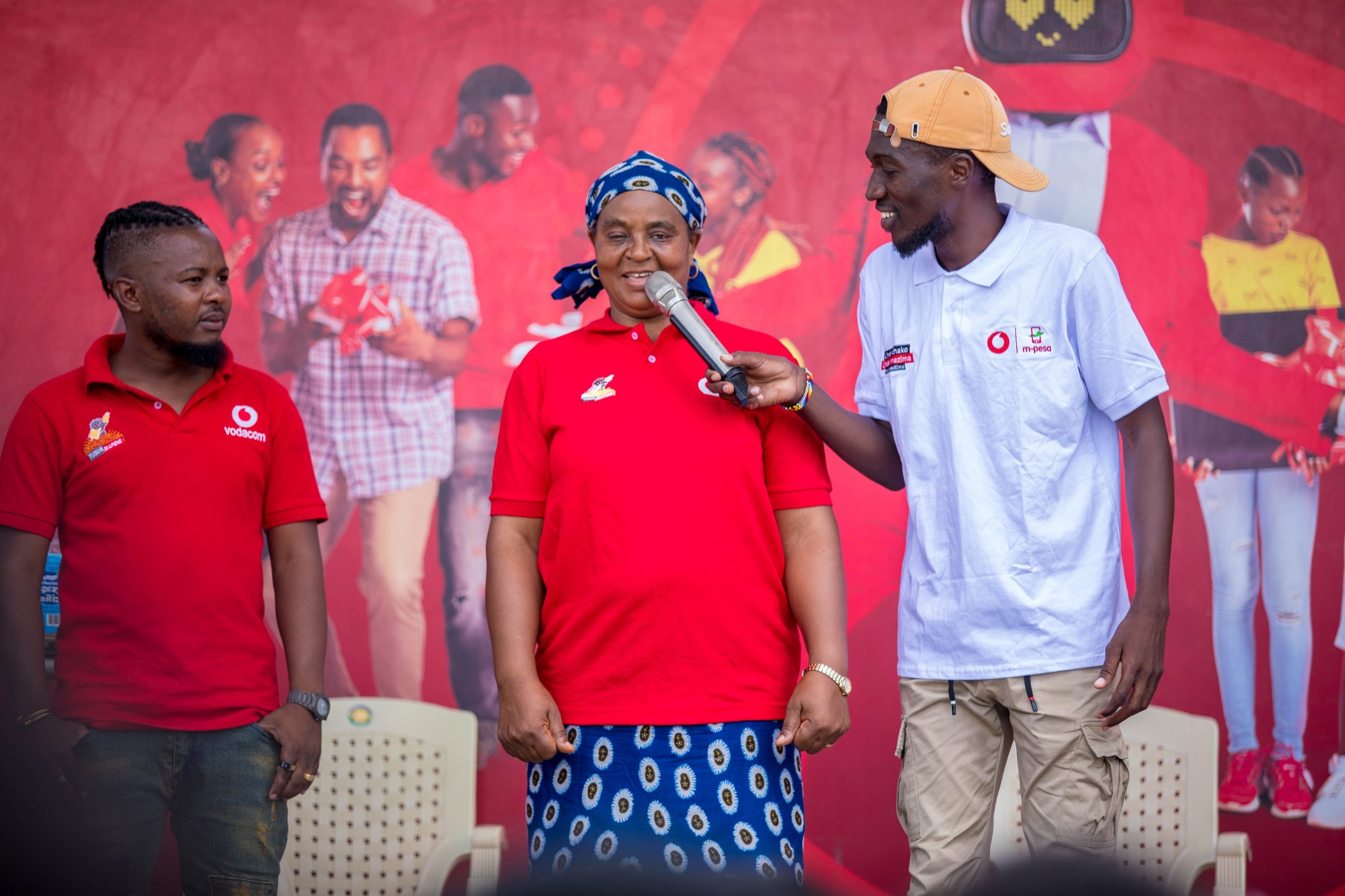 Mshindi wa zawadi ya promosheni ya Vodacom Tusua Mapene, Lilian Haule akizungumza na wakazi wa Mbagala waliojitokeza kushuhudia namna alivyokabidhiwa zawadi yake ya shilingi milioni kumi kutoka Vodacom.